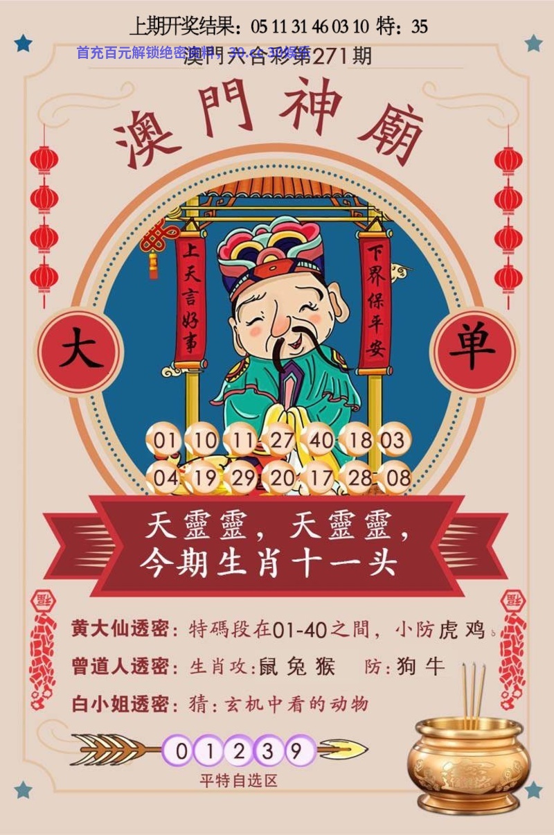 271期:三头中特〖0头1头4头〗开:鼠06准 |