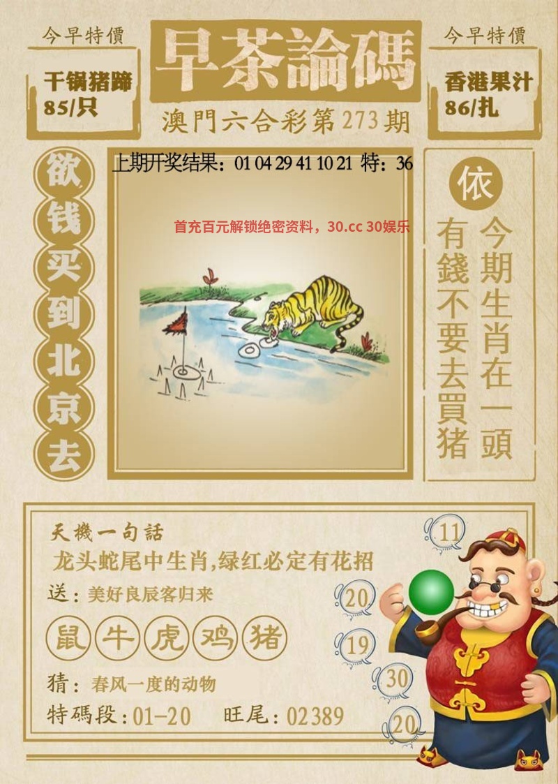 273期:【澳彩36码】中特=开:虎04准 |