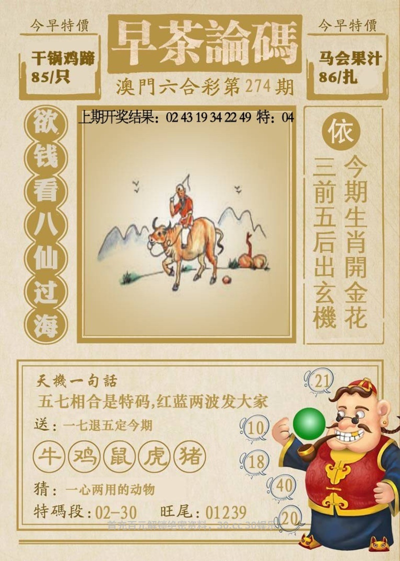 274期平特一尾【99尾】开:兔39准 |